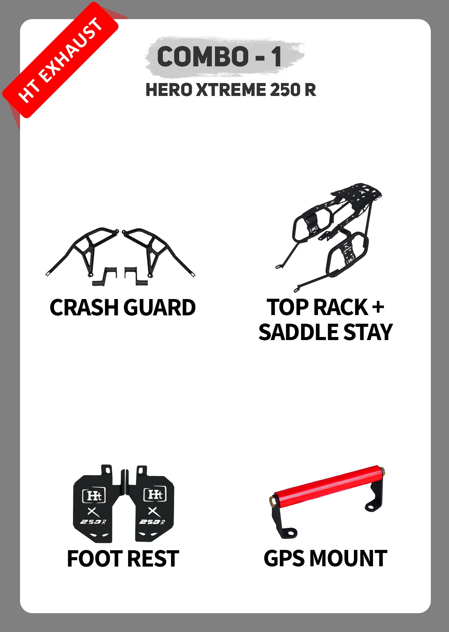 COMBO 1 XTREME 250R CRASH GUARD + TOP RACK SADDLE STAY + FOOTREST + GPS MOUNT