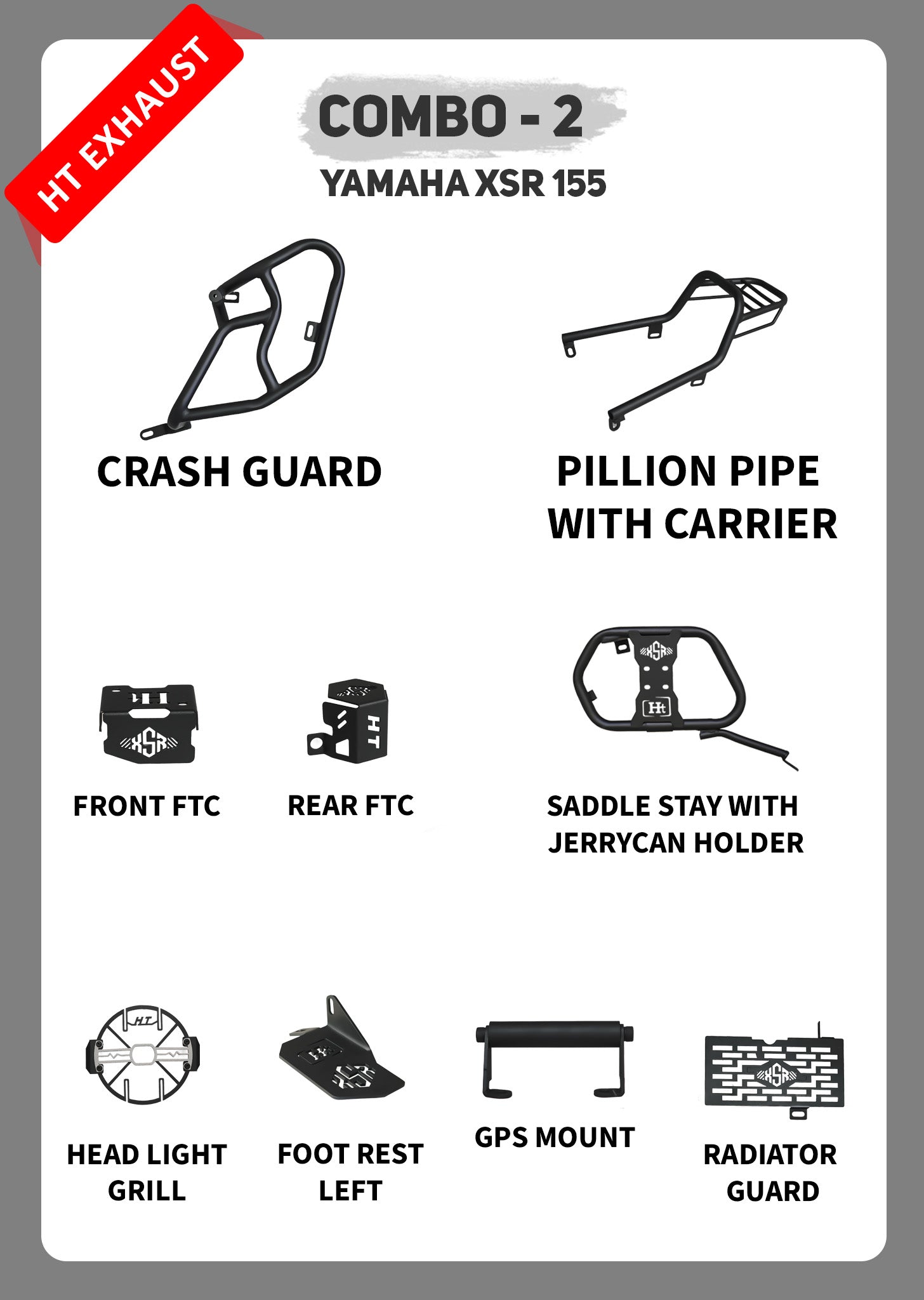 Introducing COMBO 2 for XSR 155 - 9 products bundled together for maximum value and savings! This combo offers the ultimate convenience for XSR 155 owners, with all the necessary products included. With this combo, you save time and money while ensuring top-notch performance and maintenance for your bike. Get your complete XSR 155 experience with COMBO 2.