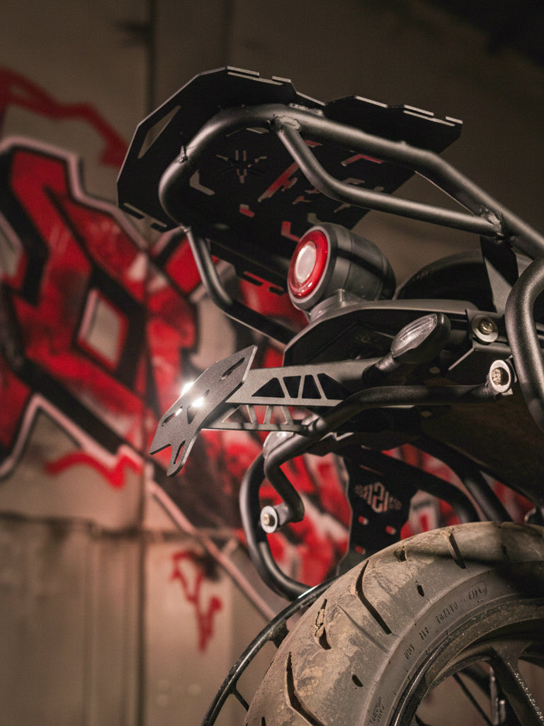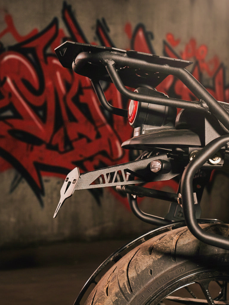 It improves the bike’s aesthetics while securely holding the number plate and indicators in place, ensuring legal compliance and enhanced style.